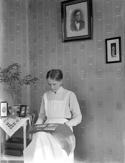 Enligt notering: "Kvinnoporträtt i finrummet".