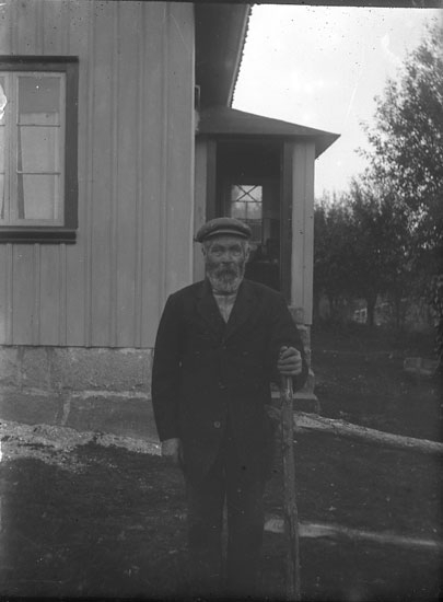 Enligt notering: "Mansperson framför huset".
