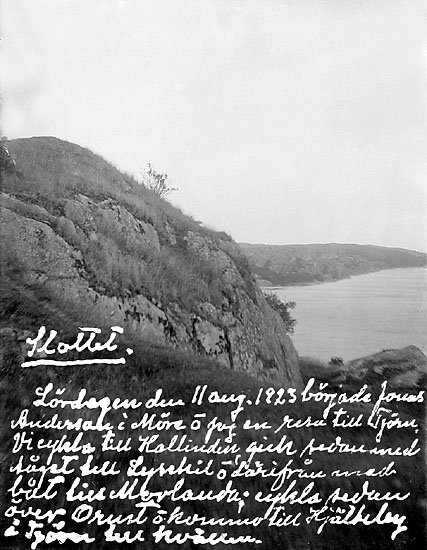 Johans text på fotot: "Slottet. Lördagen den 11 aug. 1923 började Jonas Andersson