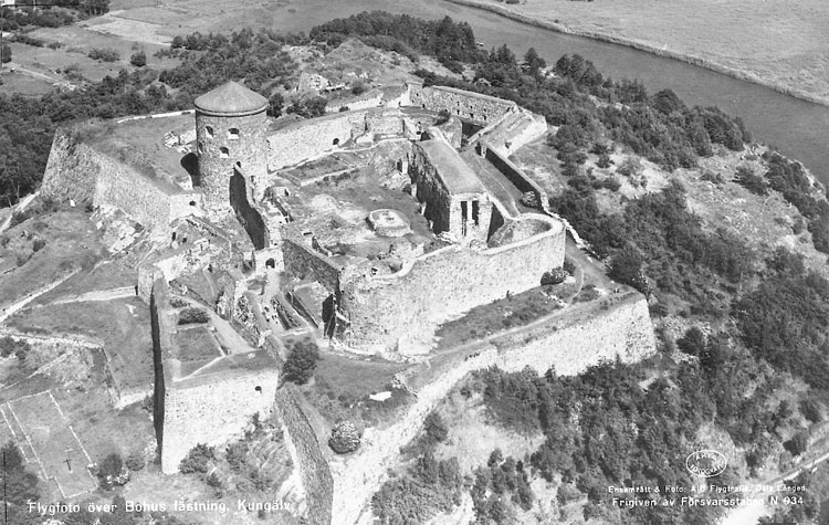 Enligt text på fotot: "Flygfoto över Bohus fästning, Kungälv".