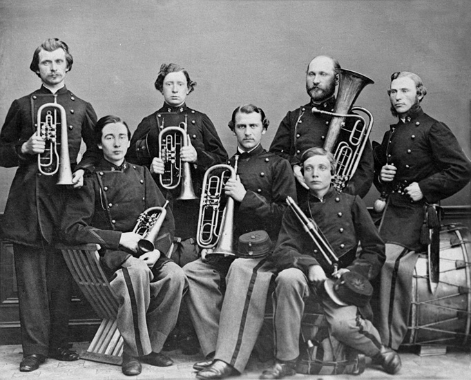 Enligt tidigare noteringar: "Gruppfoto av Skarpskyttekårens musikkår."