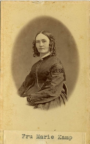 Titel: Text på kortets baksida: "Apotekerskan Fru Marie Kamp, f. Kamp".