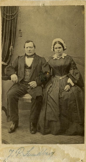 Text på kortets baksida: "Gördelmakaren J.P. Sundberg med fru".
