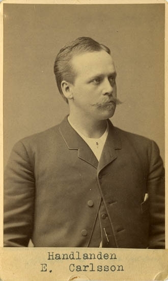 Text på kortets baksida:"Handlanden Edvard Carlsson".