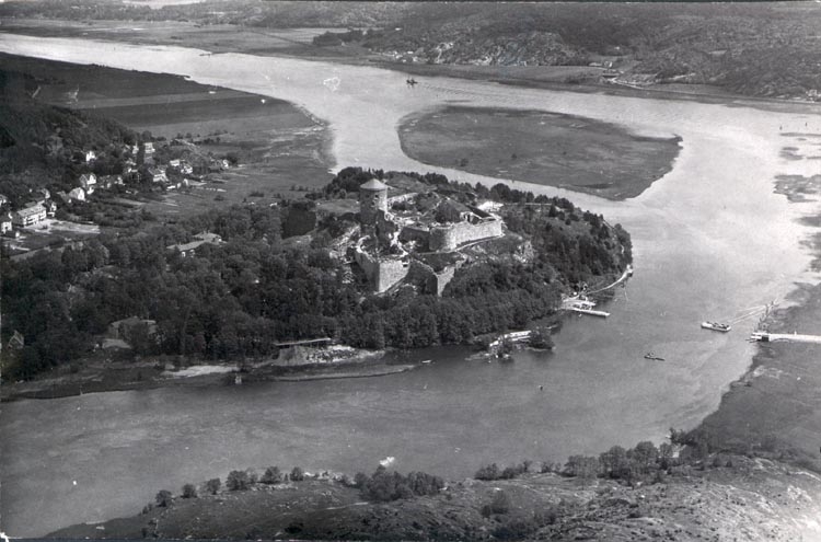 Tryckt text på kortet: "Flygfoto OSCAR BLADH Stockholm. Copyight. Reproduktion utan medgivande beivras. Enligt gällande bestämmelser skall vid Reproduktion av detta fotografi följande text anbringas. Flygfoto Oscar Bladh. N:o K 196".