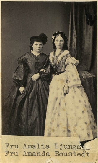 Text på kortets baksida: "Fru Amalia Ljungman, född Bergins t.v. Fru Amanda Boustedt, född Bregins".