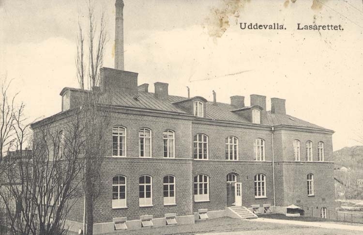 Tryckt text på kortet: "Uddevalla. Lasarettet."