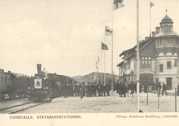 Tryckt text på kortet: "Uddevalla. Statsbanestation."