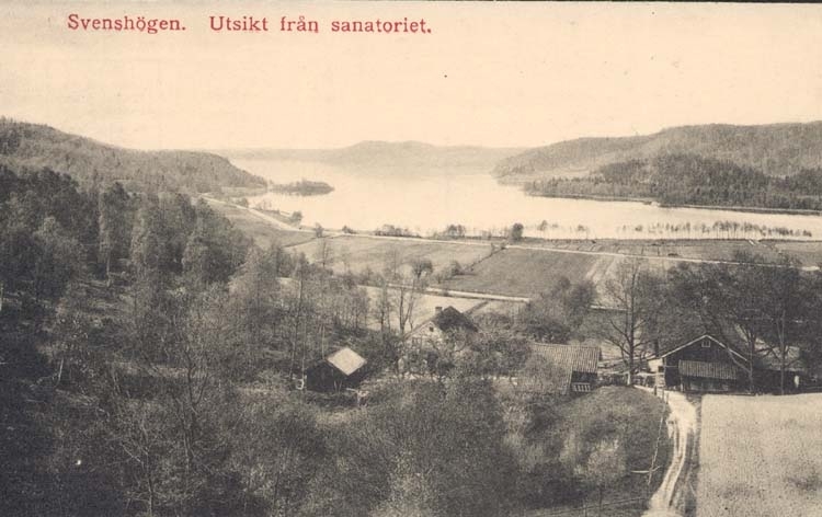 "Svenshögen Utsikt från sanatoriet" tryckt text på kortet.