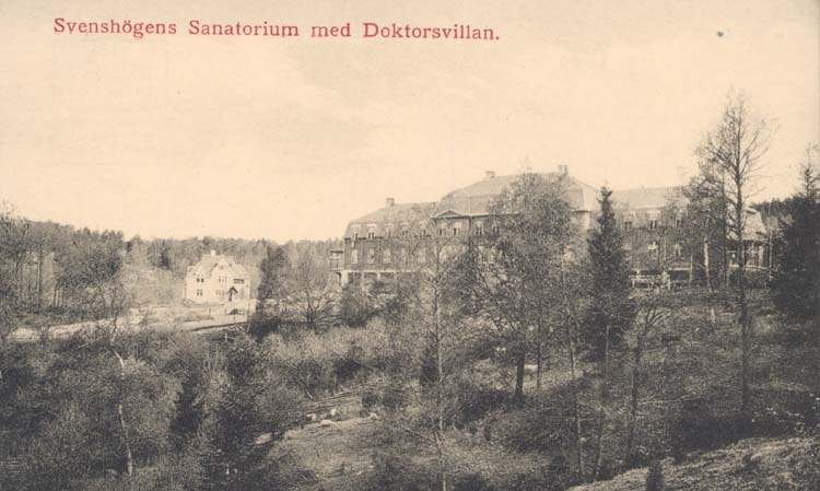 "Svenshögens Sanatorium med Doktorsvillan." tryckt text på kortet.