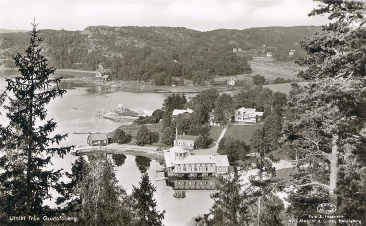Titel: Tryckt text på kortet: "Utsikt från Gustafsberg." "Foto & Ensamrätt: A/B Almqvist & Cöster, Hälsingborg." Noterat på kortet: "Gustavsberg Uddevalla." "G. fr. v."
