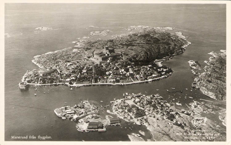 Tryckt text på kortet: "Marstrand från flygplan.."
