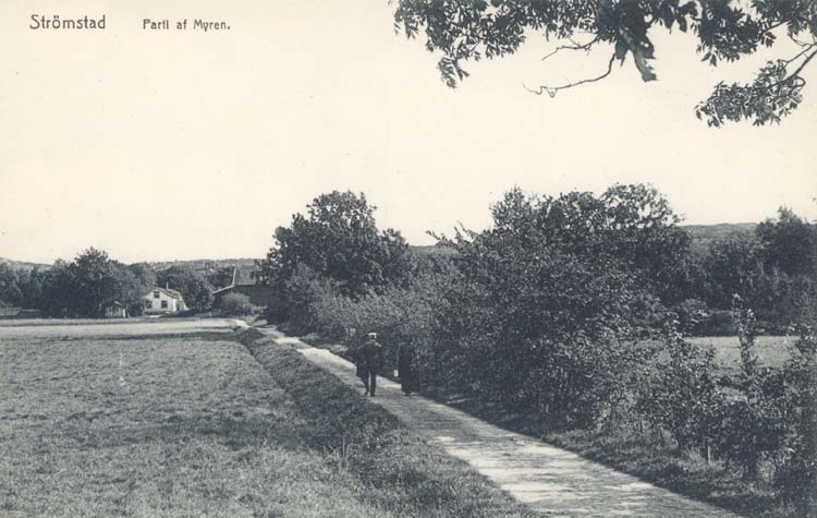 Tryckt text på kortet: "Parti af Myren. Strömstad."