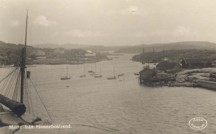 Tryckt text på kortet: "Motiv från Hunnebostrand."