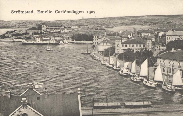Tryckt text på kortet: "Strömstad. Emelie Carlénsdagen 1907."