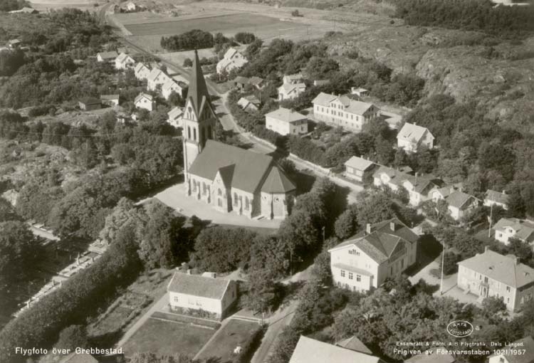 Tryckt text på kortet: "Flygfoto över Grebbestad."