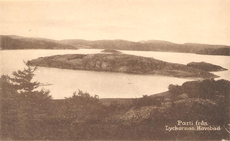 Tryckt text på kortet: "Parti från Lyckornas Havsbad".
