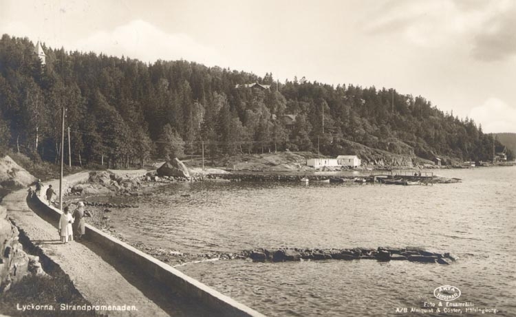 Tryckt text på kortet: "Lyckorna. Strandpromenaden".