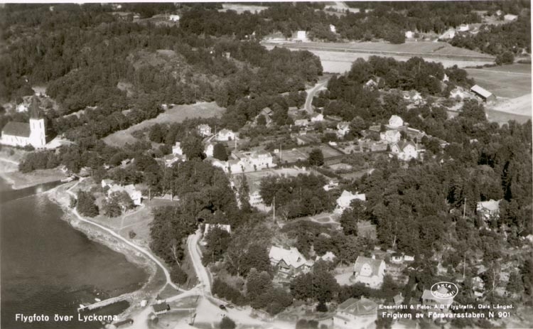 Tryckt text på kortet: "Flygfoto över Lyckorna".