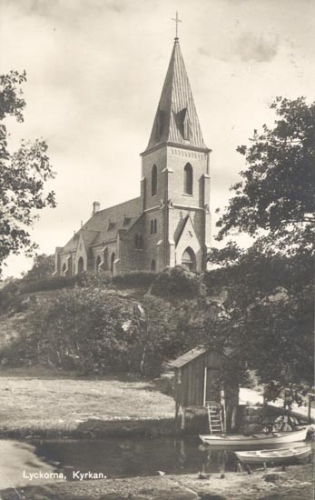 Tryckt text på kortet: "Ljungs kyrka". "Lyckorna, Kyrkan".
