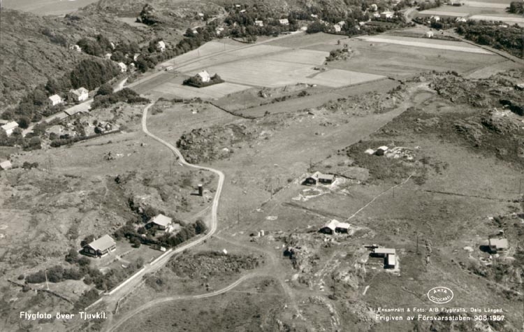 Tryckt text på kortet: "Flygfoto över Tjuvkil".