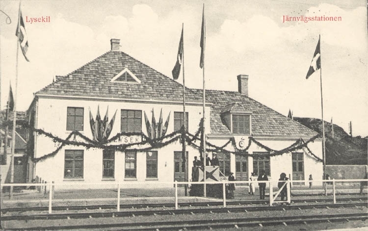 Tryckt text på kortet: "Lysekil. Järnvägsstation."