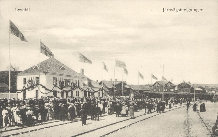 Tryckt text på kortet: "Lysekil. Järnvägsinvigningen."
