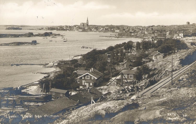 Tryckt text på kortet: "Lysekil. Utsikt från Fridhem"