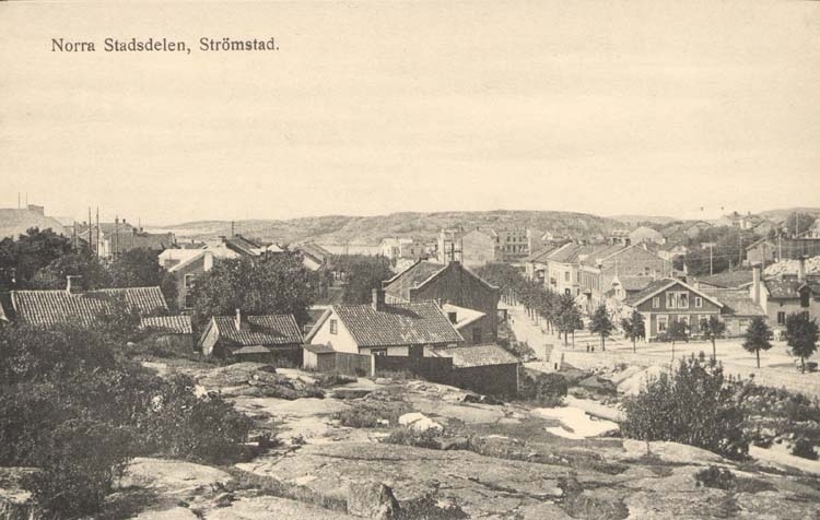 Tryckt text på kortet: "Norra Stadsdelen, Strömstad."