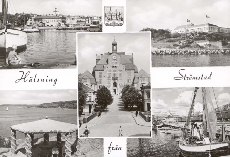 Tryckt text på kortet: "Hälsning från Strömstad."