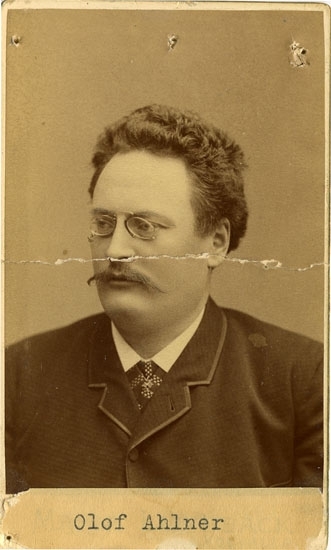 Text på kortets baksida: "Olof Ahlner f. 1847 död 1904. Collega vid läroverket i U-a 1879-82. Rektor vid Flickskolan".