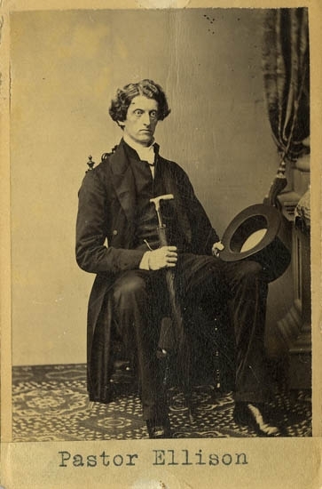 Text på kortets baksida: "Det himelska metspöt" Pastor Ellison, Eng. kyrkan i Gbg. Var synnerligen ofta i Uddewall som predikant för engelska familjerna. Ung 7 fots längd".