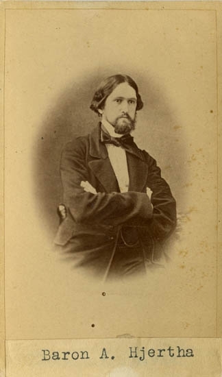 Text på kortets baksida: "Baron Alfred Hjerta, Fidekomisset, Frummestad. Skara stift".