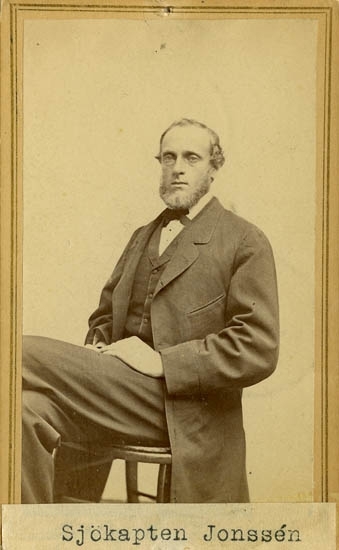 Text på kortets baksida: "Sjökapten Gustaf Jonssén".