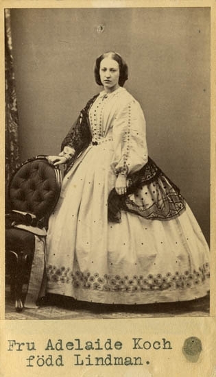 Text på kortets baksida:"Fru Adelaida Koch, f. Lindeman. Född 1865. Gift med Mikael Koch".