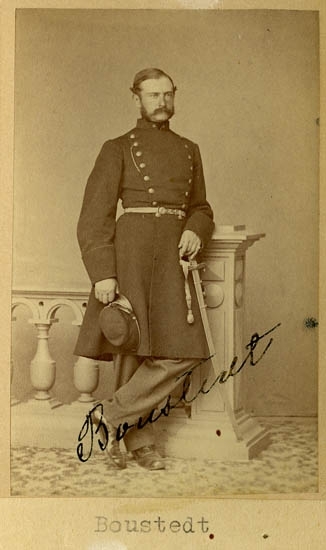Text på kortets baksida: "Axel Rudolf Boustedt, kapten vid Boh. reg. F. 1835".