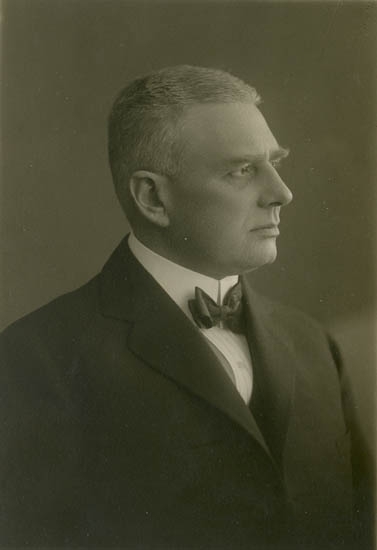 Text på kortets baksida: "Järnhandlaren Gustaf Lundqvist, Uddevalla. Far till Bertil Lundqvist. Född 1881 död 1828".