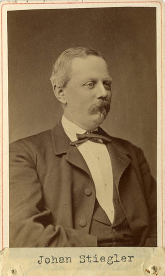 Text på kortets baksida: "Handlanden Johan Andreas Stiegler, född 1843 d. 1888".