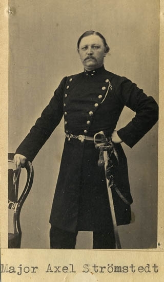 Text på kortets baksida: "Major Axel Strömstedt, f. 14/10 1830. Överstelöjtnant. Boh. reg.".
