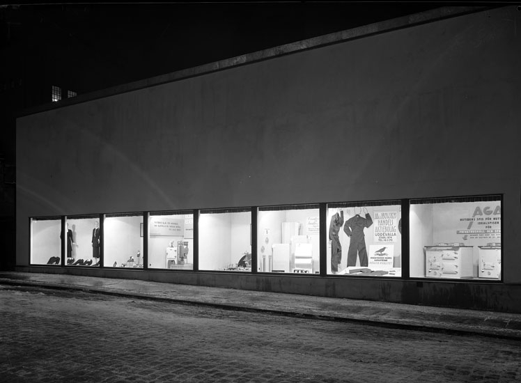 Uppgift enligt fotografen: "Uddevalla. Reklamfönster vid Hallmans. Kungsgatan."