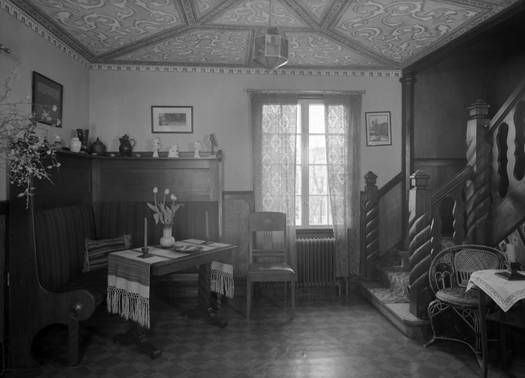 Uppgift enligt fotografen: "Uddevalla. Interiör fru Toni Wikborgs hem Ådalsgatan 4."