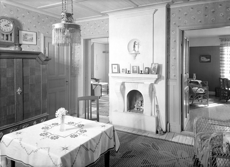 Uppgift enligt fotografen: "Uddevalla. Interiör fru Toni Wikborgs hem Ådalsgatan 4."
