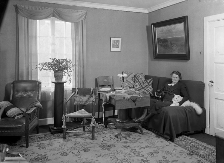 Uppgift enligt fotografen: "Uddevalla. Interiör fru Toni Wikborgs hem Ådalsgatan 4."