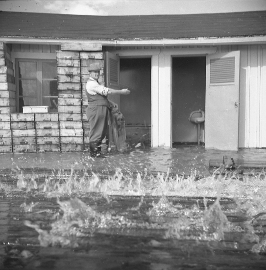 Text till bilden: "Fiskauktionshall. Översvämning.1950.09"