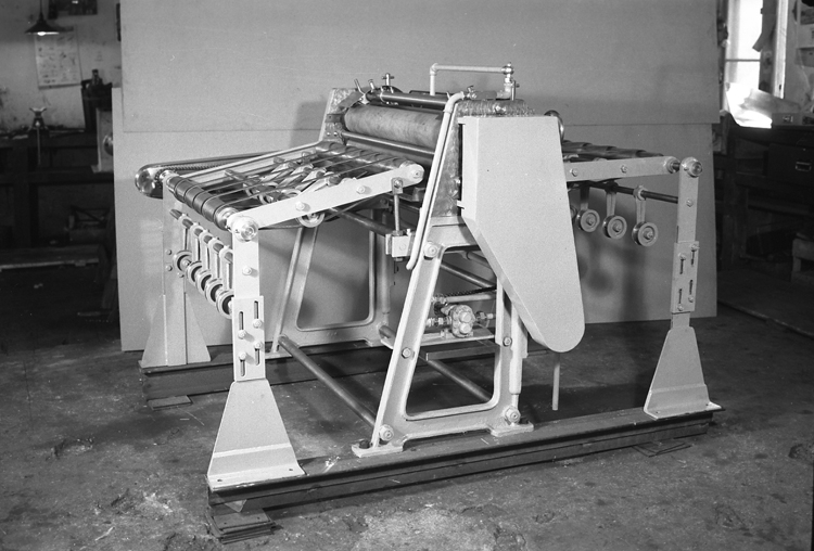Titel: Text till bilden: "ARO. Mek. Verkstad. Lackmaskin II. 1950.10.12" i