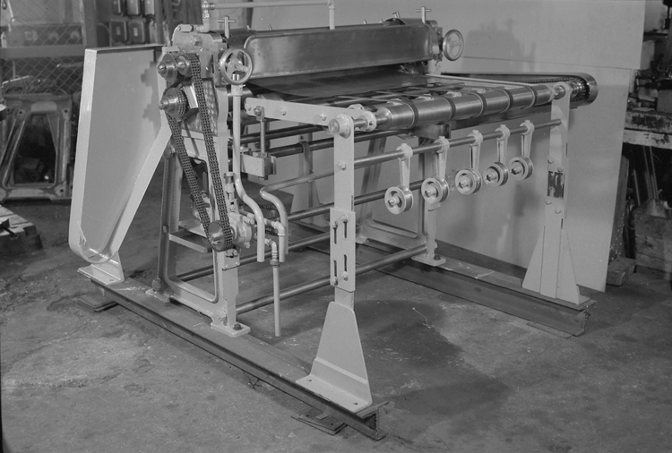 Titel: Text till bilden: "ARO. Mek. Verkstad. Lackmaskin II. 1950.10.12" i