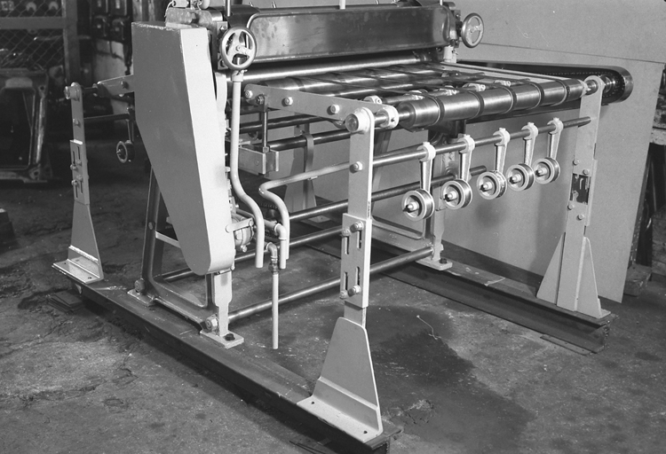 Titel: Text till bilden: "ARO. Mek. Verkstad. Lackmaskin II. 1950.10.12" i