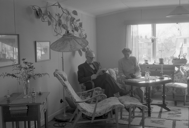 Text till bilden: "Interiör hos Hadelius. Fiskaregatan 8 B. 1951"