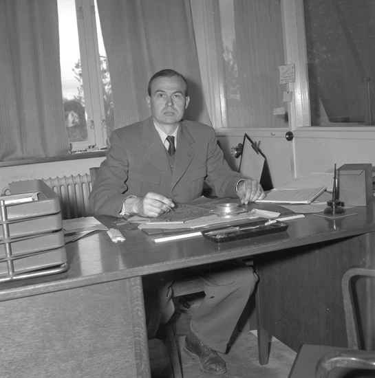 Titel: Text till bilden: "AB Verkstadsindustri Brastad. Interiör. 1953" i