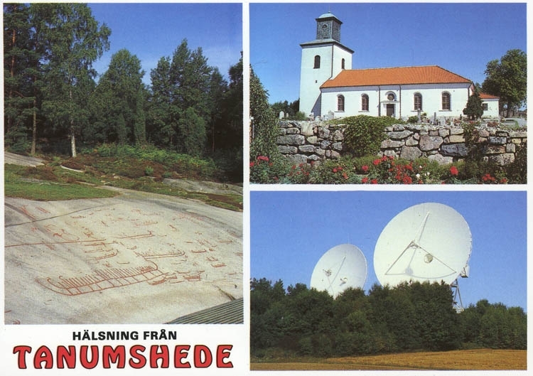 "Hälsning från Tanumshede". "Tanumshede: Vitlyckehällen, kyrkan och telesatelitstationen".